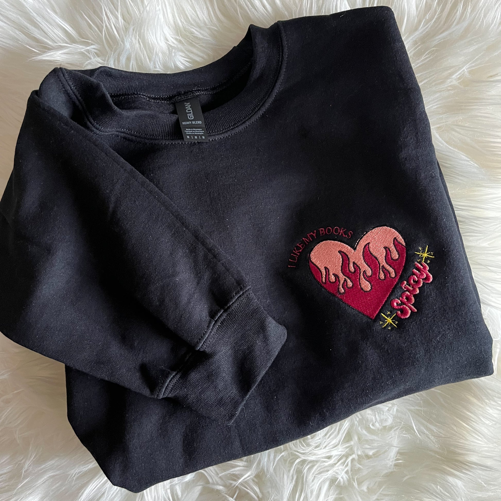 If your TBR is 98% smut, 2% plot, and you consider closed door a personal offense, then this black crewneck sweatshirt was made for you. Embroidered on the left chest with a pink and red fiery heart alongside the words “I Like My Books Spicy,” it’s the perfect way to warn (or tempt) people into asking about your latest five-star, blush-worthy read.